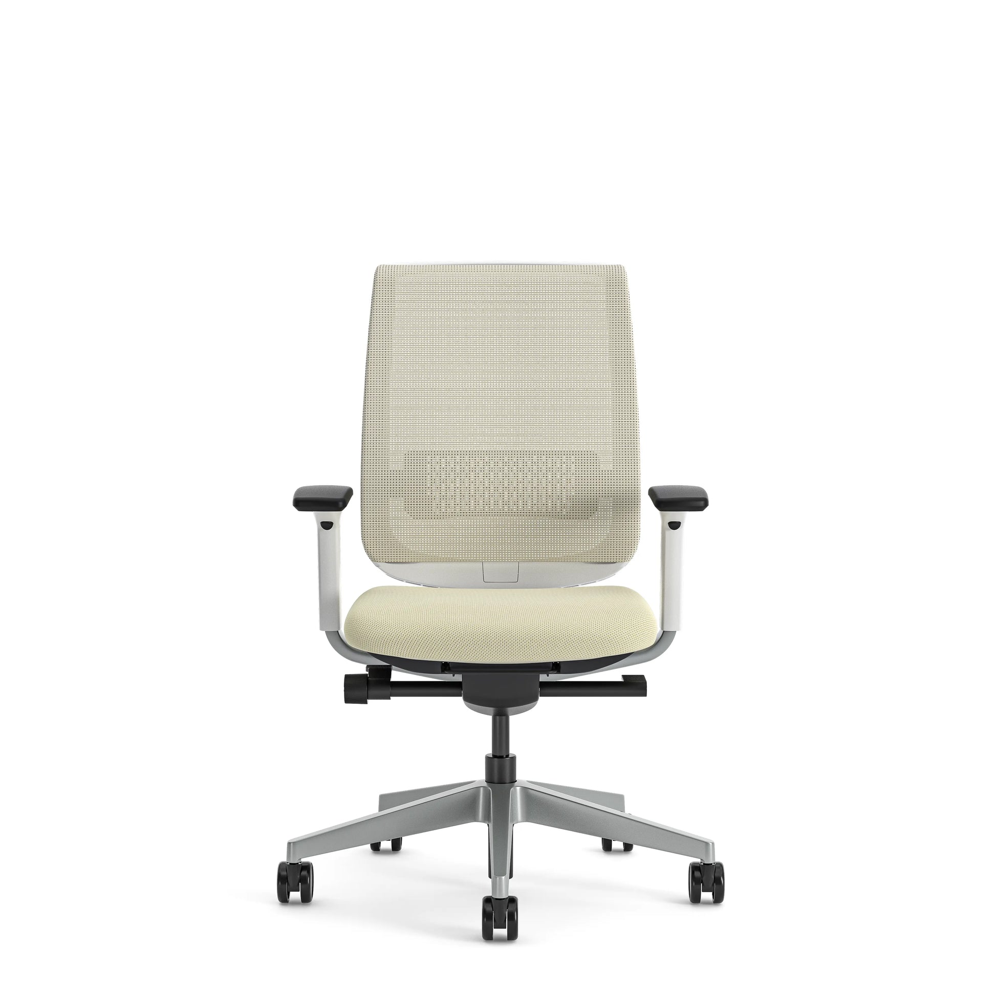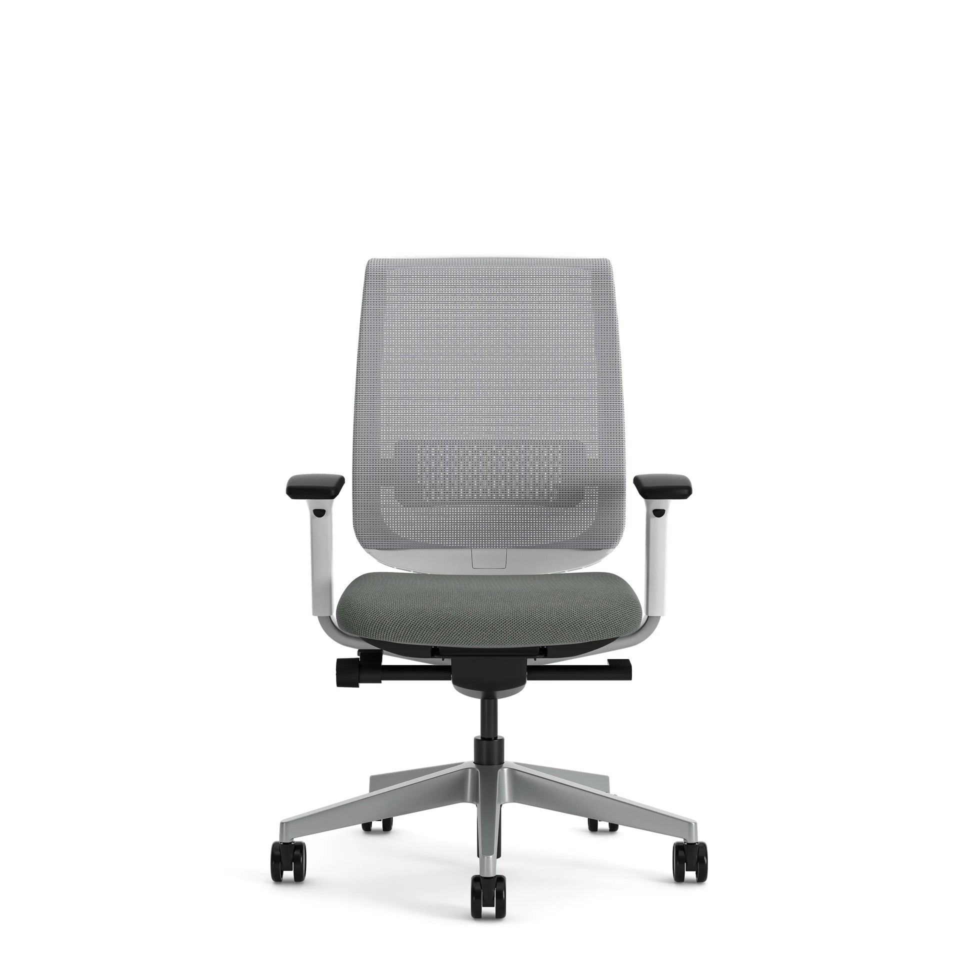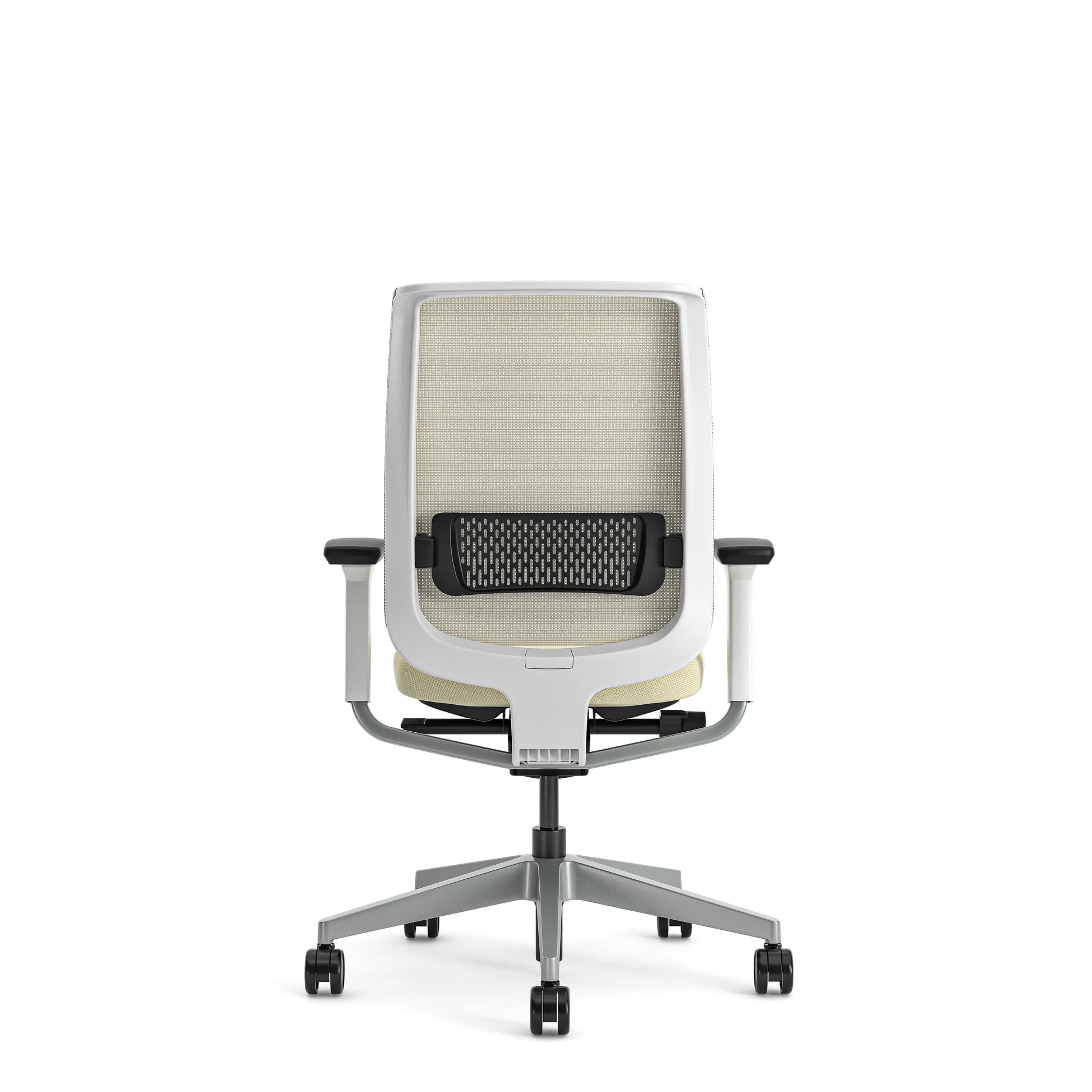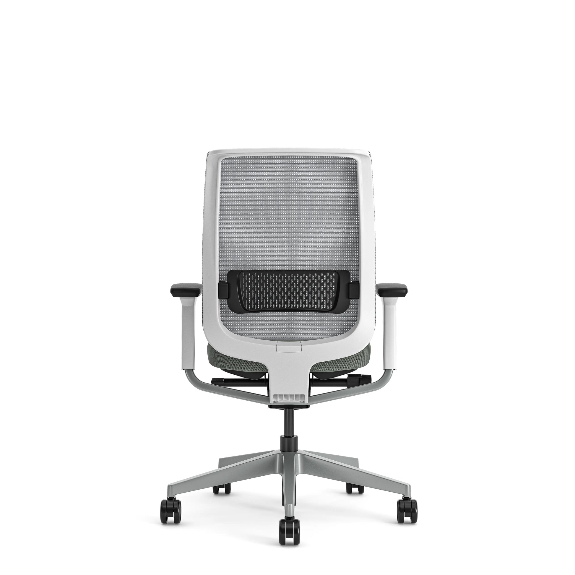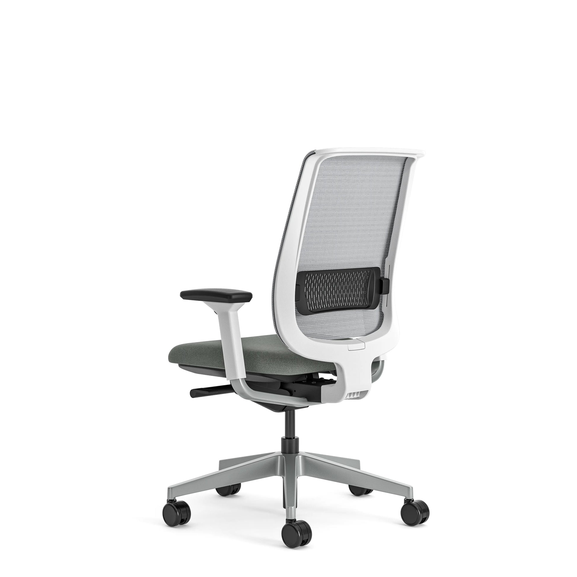 - La silla de oficina Steelcase Reply Air ofrece brazos regulables en altura y sujeción lumbar regulable en altura.